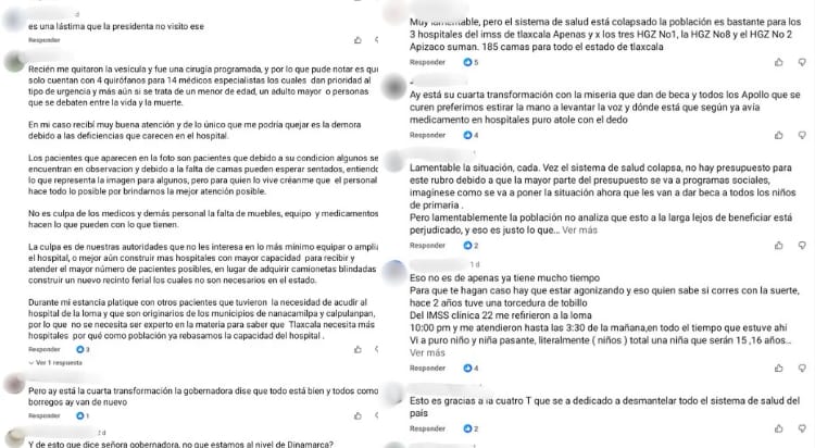 Comentarios de usuarios en redes sociales apuntan a una problemática estructural en Tlaxcala. De acuerdo con estos señalamientos, los tres hospitales del IMSS en el estado HGZ No. 1, HGZ No. 8 y HGZ No. 2 en Apizaco contarían en conjunto con un número limitado de camas para atender a la población estatal, lo que derivaría en una constante saturación.