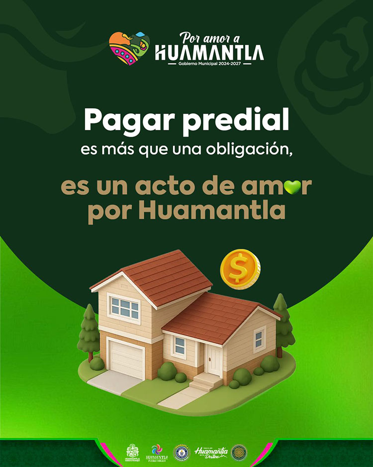 El Gobierno Municipal de Huamantla hace una cordial invitación a la ciudadanía para que realice el pago oportuno del impuesto predial correspondiente al ejercicio fiscal 2026 durante el mes de enero y aproveche los beneficios que ofrecen las autoridades para quienes cumplen puntualmente con esta obligación.