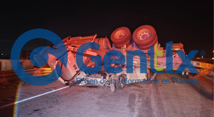Un grave siniestro vial se registró esta madrugada en el kilómetro 225 de la autopista Arco Norte, a la altura de Sanctórum, en el estado de Tlaxcala. El incidente involucró a un tractocamión que volcó, generando un impacto directo contra un vehículo particular tipo Sentra.