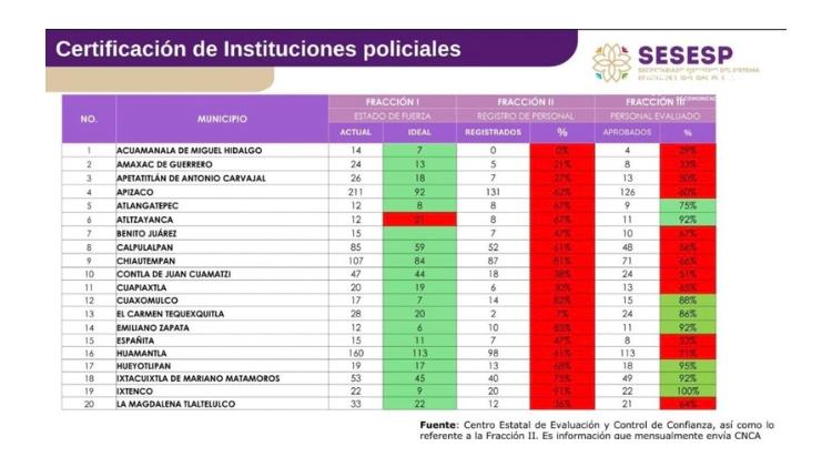 El titular del SESESP explicó que estas bajas afectaron temporalmente la integración de las corporaciones municipales; sin embargo, aseguró que ya se encuentran en marcha programaciones de exámenes de control de confianza y procesos de reclutamiento para nuevos elementos en los 60 municipios del estado.