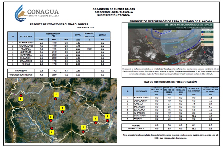 En tanto, de acuerdo con la información difundida por la CONAGUA Delegación Tlaxcala, la Coordinación Estatal de Protección Civil (CEPC), que encabeza Juvencio Nieto Galicia, no se presentaron afectaciones por el descenso de la temperatura.