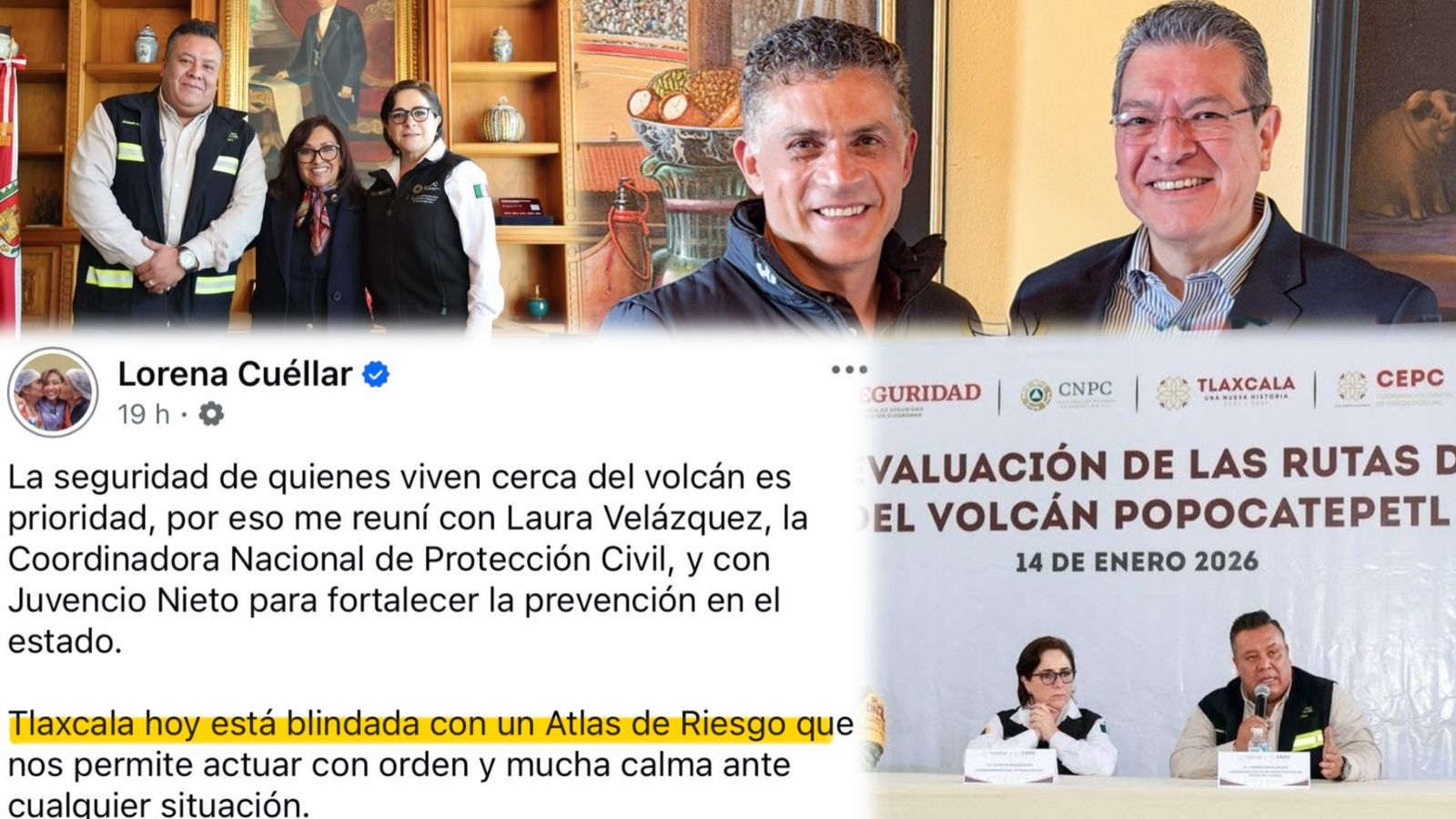 Lo que nos faltaba, ayer al presumir la visita de la titular nacional de Proteccion Civil, Laura Velázquez, la gobernadora, Lorena Cuéllar aseguró por medio de sus redes sociales que “Tlaxcala hoy está blindada con un Atlas de riesgo que nos permite actuar con orden y mucha calma ante cualquier situación”, y eso falta a la verdad.