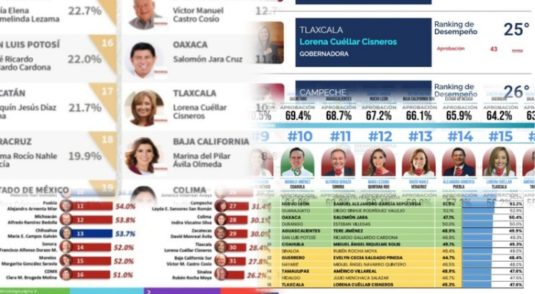 La electa de Movimiento Regeneración Nacional (MORENA) en Tlaxcala, Lorena Cuéllar Cisneros, cerró el cuarto año de su administración estatal con una aprobación del 10.5 por ciento, de acuerdo con la escuela de “Arias Consultores”, publicada en la Revista 32 que colocó a la ex priísta en el lugar 29 del Ranking Nacional.