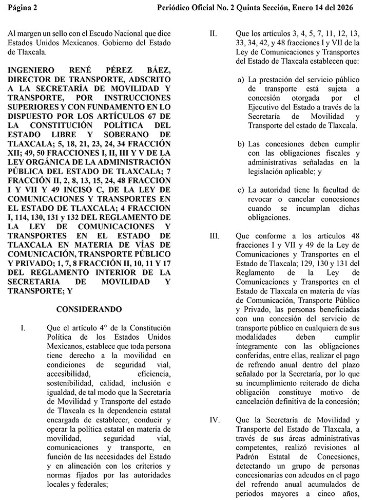 La conceciones cnceladas de manera definitiva son “Autotransportes Tlaxcala-Apizaco-Huamantla”, “Urbanos y Suburbanos de Tlaxcala”, “Nicolás López Lozano”, “Ángel García Pérez”, “José Homero Díaz Contreras”, “Autotransportes Morales Barranco”, “María Feliz Álvarez Parra”, “Edgar Iván Díaz Rivera” y “Pedro Pascal Popocalt Pérez”.