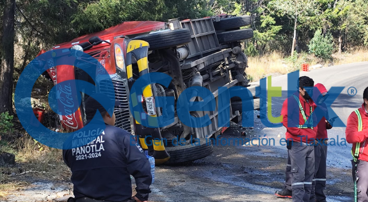 Durante la mañana de este lunes se reportó la volcadura de un camión de una empresa refresquera sobre el camino local que conduce de la zona de San Francisco Temetzontla a la autopista Tlaxcala-San Martín. Hasta el momento se desconocen las causas del accidente; sin embargo, no se descarta que el exceso de velocidad haya sido un factor.