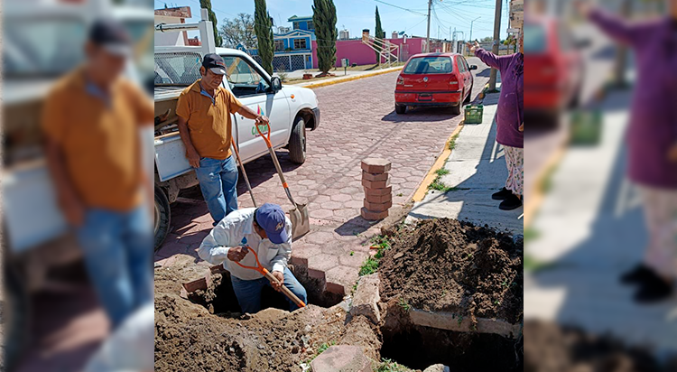 Entre las acciones más recientes, se lleva a cabo una conexión nueva en los límites de Santa María, así como trabajos de atención a una fuga en la calle Temporal y la revisión de una fuga en la calle 16 de Septiembre, en el barrio de San Lucas.