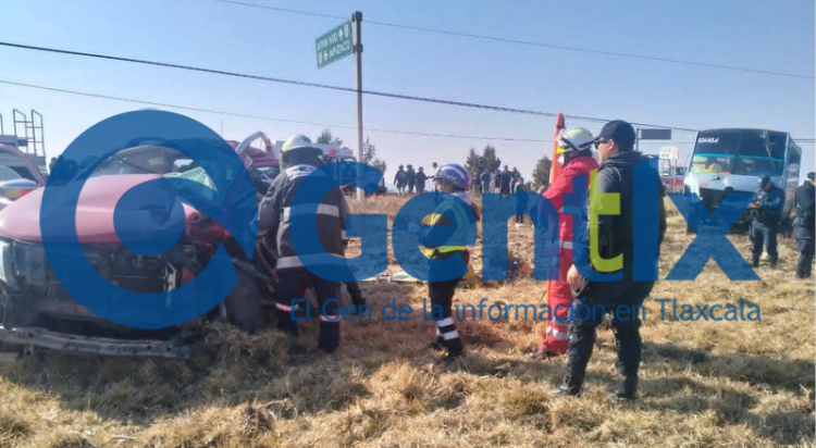 El percance involucró una unidad de la línea ATAH (Autotransportes Tlaxcala, Apizaco, Huamantla) —descrita como microbús de pasajeros— y una camioneta pickup Nissan roja.