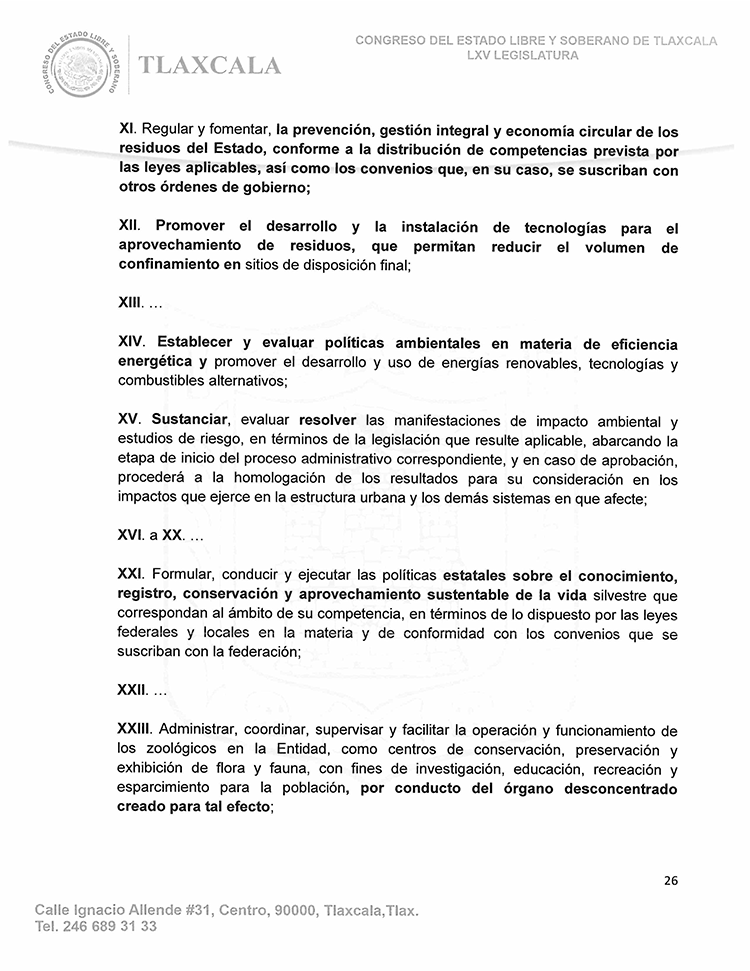Las reformas aprobadas por el Congreso del Estado, a petición de la Gobernadora de Tlaxcala, Lorena Cuéllar Cisneros, a la Ley Orgánica de la Administración Pública, otorgan nuevas facultades a la Secretaría de Medio Ambiente (SMA), que ahora tendrá mayores competencias en el manejo de residuos y áreas protegidas.