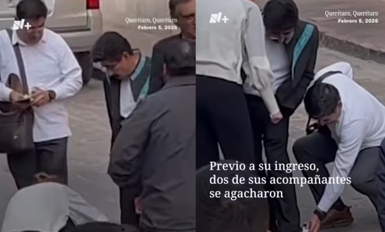 Previo a su entrada al Teatro de la República, en Querétaro, para la ceremonia por el aniversario de la promulgación de la Constitución Política de los Estados Unidos Mexicanos, cámaras captaron que el ministro presidente de la Suprema Corte de Justicia de la Nación (SCJN) se encontraba acompañado por dos personas, cuando una de ellas se agacha para limpiarle el calzado.