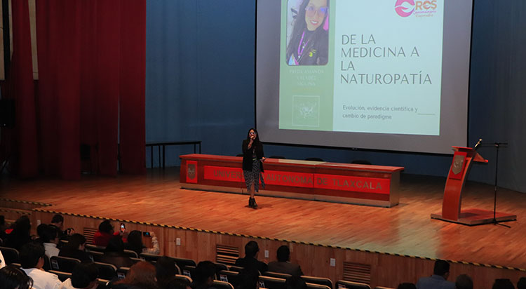 Asimismo, la Licenciada Keren Cahuantzi Sánchez, egresada de la Licenciatura en Naturopatía, compartió su experiencia profesional y destacó la formación integral recibida, así como el impacto social de la naturopatía en la atención de personas adultas mayores.