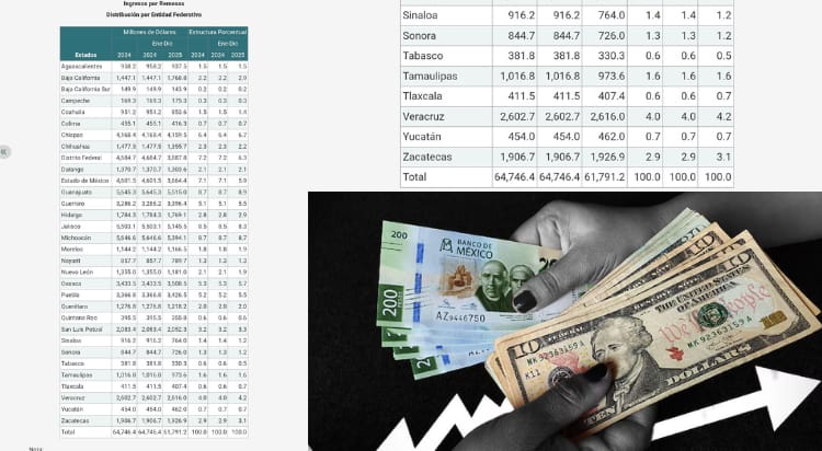 En el cuarto trimestre de 2025, la captación estatal representó 0.66% del total nacional, el cual ascendió a 16 mil 81 millones 724 mil 078 dólares. Estos recursos, enviados principalmente por connacionales radicados en el extranjero, se destinan en su mayoría al gasto del hogar, educación y atención médica.