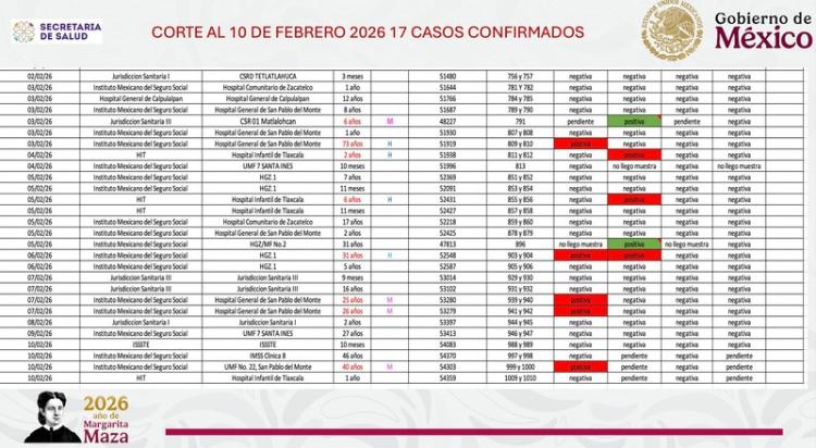 Al corte al corte del 10 de febrero se reportaron 17 casos de sarampión; autoridades sin mascarilla y prensa obligada a portarla.