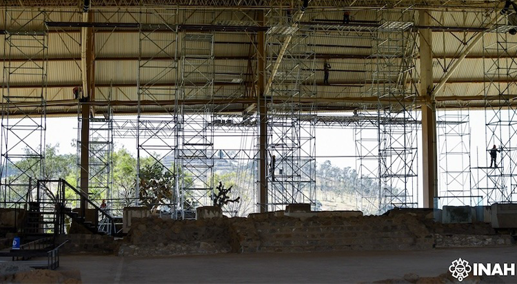 Luego de cuatro meses de labores, la Secretaría de Cultura del Gobierno de México, a través del Instituto Nacional de Antropología e Historia (INAH) y del Centro INAH Tlaxcala, concluyó los trabajos de mantenimiento general de la cubierta del Gran Basamento de la Zona Arqueológica de Cacaxtla, la cual desde 2022 solo recibía labores correctivas puntuales.