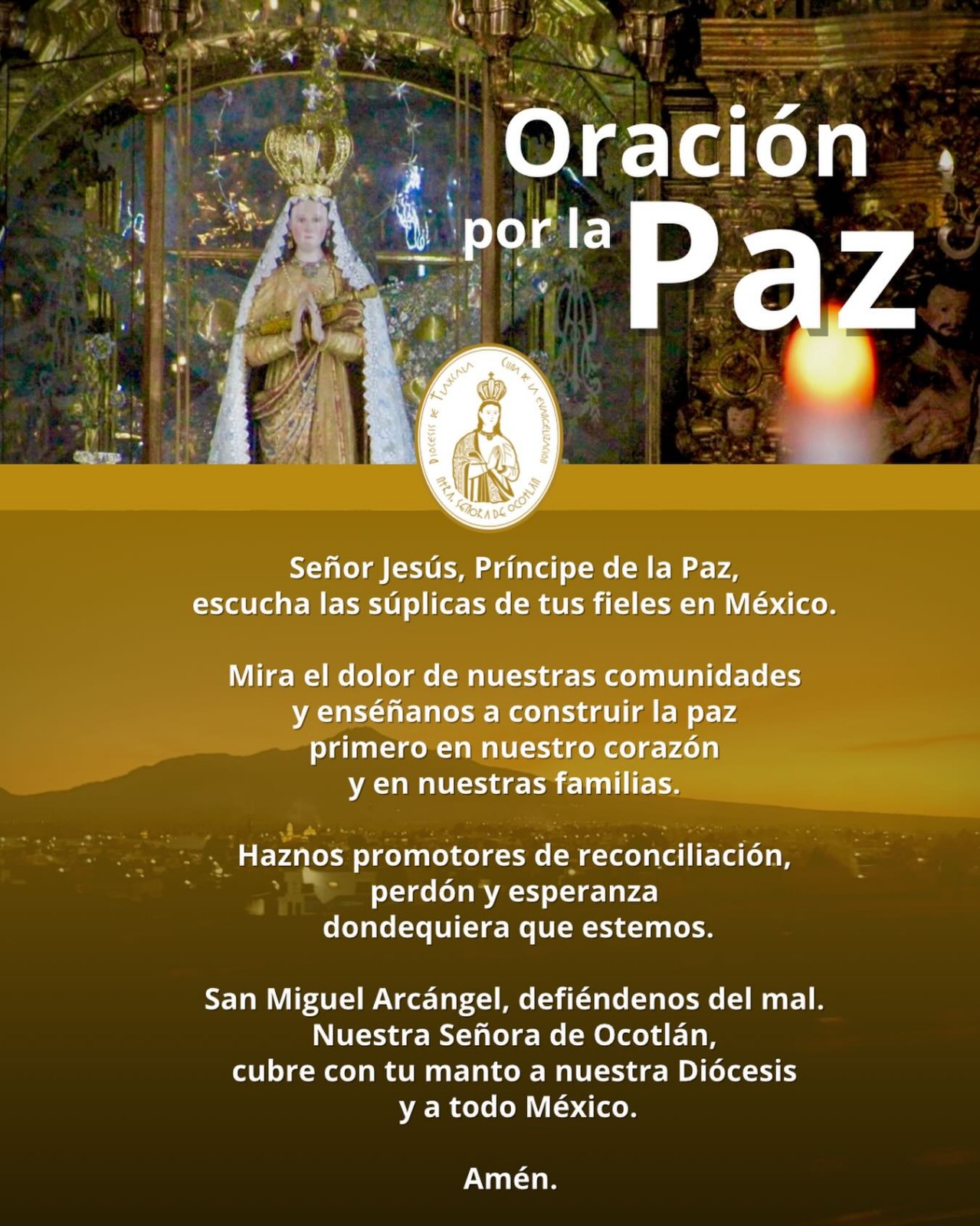 “Ante los acontecimientos recientes que han surgido en nuestro país, como Iglesia elevamos nuestra voz y nuestro corazón a Dios. Invitamos a toda la comunidad a unirnos en oración por la paz de México, comenzando por construirla en nuestro propio corazón y en nuestras familias. Que, por intercesión de San Miguel Arcángel y Nuestra Señora de Ocotlán, seamos verdaderos promotores de reconciliación y esperanza en medio de nuestras comunidades”.