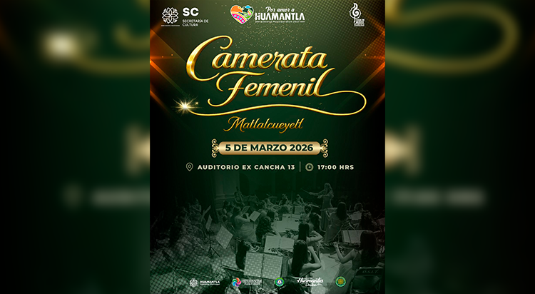 En el marco de las actividades conmemorativas por el Día Internacional de la Mujer, el Gobierno Municipal de Huamantla que encabeza Salvador Santos Cedillo invita a la ciudadanía a disfrutar de la presentación de la Camerata Femenil, un ensamble musical integrado exclusivamente por mujeres, que destaca por su talento, disciplina y sensibilidad artística.