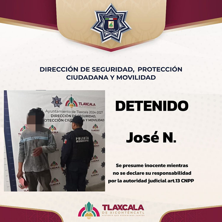 Posteriormente, el sujeto fue trasladado a la Dirección de Seguridad, Protección Ciudadana y Movilidad del municipio de Tlaxcala, donde quedó a disposición del juez municipal, quien determinará su situación conforme a lo establecido por la ley.