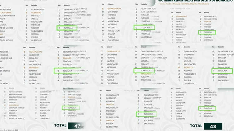 En febrero, la CNS documentó 13 Homicidios Dolosos en Tlaxcala