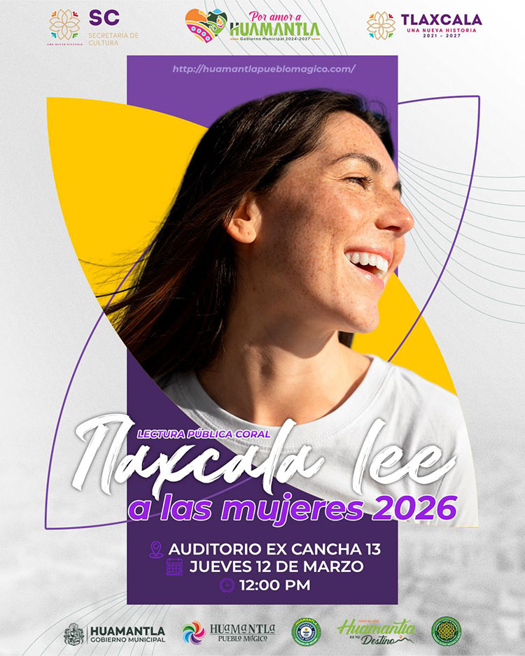 En el marco de las actividades culturales y del día de la mujer que promueven la lectura y el reconocimiento del talento femenino, Huamantla será sede de la jornada “Tlaxcala Lee a las Mujeres 2026”, una iniciativa impulsada por la Secretaría de Cultura del Gobierno del Estado que busca visibilizar la literatura escrita por mujeres y fortalecer el acceso a la cultura en la entidad.