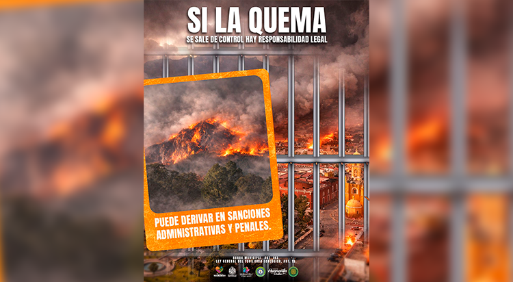 Las autoridades municipales recordaron que cuando una quema se descontrola y provoca un incendio que afecta vegetación natural, puede configurarse como un delito ambiental de carácter federal, lo que puede derivar en sanciones administrativas e incluso responsabilidades penales.