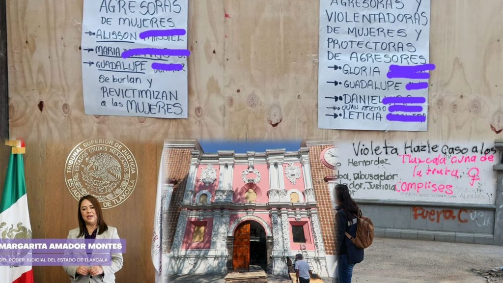 Ese mismo día de su videito, en la marcha alusiva al menos al menos cinco juezas y jueces, así como tres Ministerias Púbicas de la FGJE fueron evidenciadas en carteles pegados en el antiguo Palacio de Justicia como agresoras y violentadoras, así como protectoras de agresores.