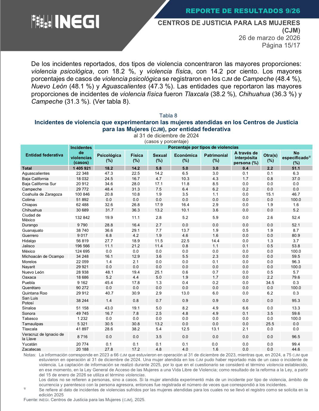 El estado reporta más de 41 mil casos y destaca por altos porcentajes en agresiones físicas y económicas.