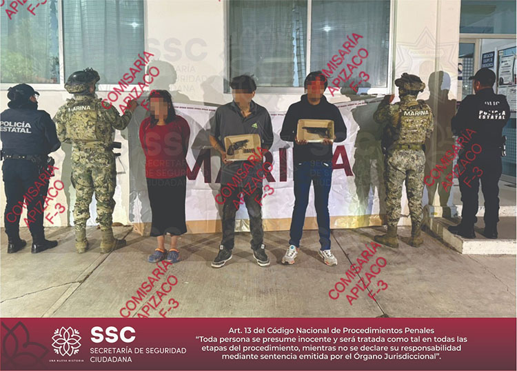 Posteriormente, tras confirmar la procedencia ilícita de los vehículos y el aseguramiento del armamento, se procedió a la detención inmediata de quienes se identificaron como, Cristian N., de 31 años de edad, Juan Carlos N., de 21 años de edad y Denise N., de 36 años de edad y posteriormente fueron puestos a disposición de la autoridad competente.