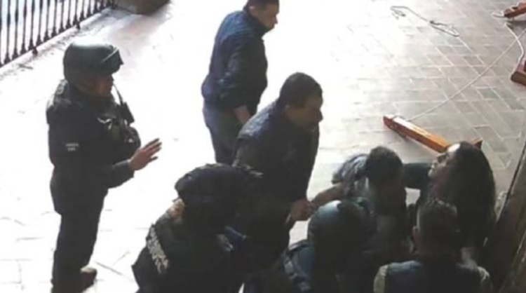 El Colectivo #NiUnoMás Michoacán dio a conocer un video de una cámara de seguridad en el que se observa cómo siete uniformados, junto con Oseguera, someten a la periodista durante la cobertura por las movilizaciones tras el asesinato de Carlos Manzo