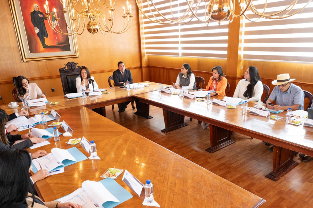 La presidenta del Tribunal Superior de Justicia del Estado (TSJE), Fanny Margarita Amador Montes junto con el presidente del Órgano de Administración Judicial (OAJ), Sergio Pérez Flores, sostuvieron una reunión de trabajo con la presidenta honorífica del Sistema Estatal para el Desarrollo Integral de la Familia (SEDIF), Mariana Espinosa de los Monteros Cuéllar, así como con los titulares de diferentes dependencias, con el objetivo sumar esfuerzos para el fortalecimiento del Registro Nacional de Obligaciones Alimentarias (RNOA).