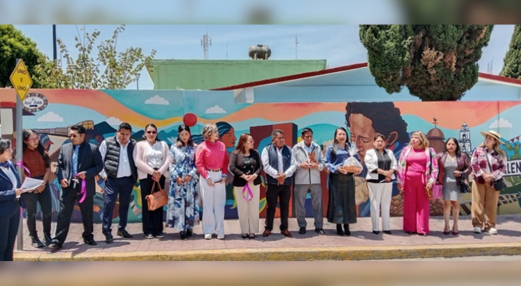 La Feria del Migrante incluyó la develación de un mural en la Primaria Xicohténcatl Atzayacatzi, en donde pobladores de La Magdalena Tlaltelulco que fueron migrantes y regresaron a sus hogares plasmaron sus manos.