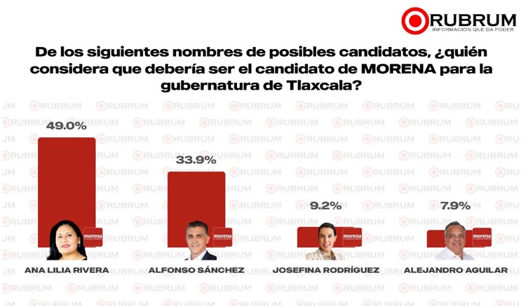 De realizarse hoy la elección para la gubernatura de Tlaxcala, la senadora Ana Lilia Rivera Rivera y el partido Morena obtendrían la victoria con una amplia ventaja, de acuerdo con una encuesta de Rubrum levantada el 20 de abril.