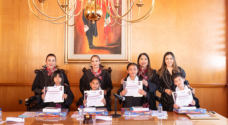 Estuvieron presentes en esta sesión la presidenta del Tribunal Superior de Justicia del Estado (TSJE), Fanny Margarita Amador Montes; la magistrada Marisol Barba Pérez y el magistrado Ricardo Rodolfo Trejo Ortiz, así como familiares de las niñas y niños participantes.