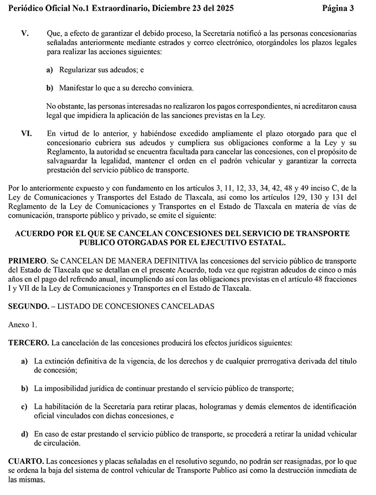 Cancela Gobierno de Tlaxcala 76 concesiones de manera definitiva
