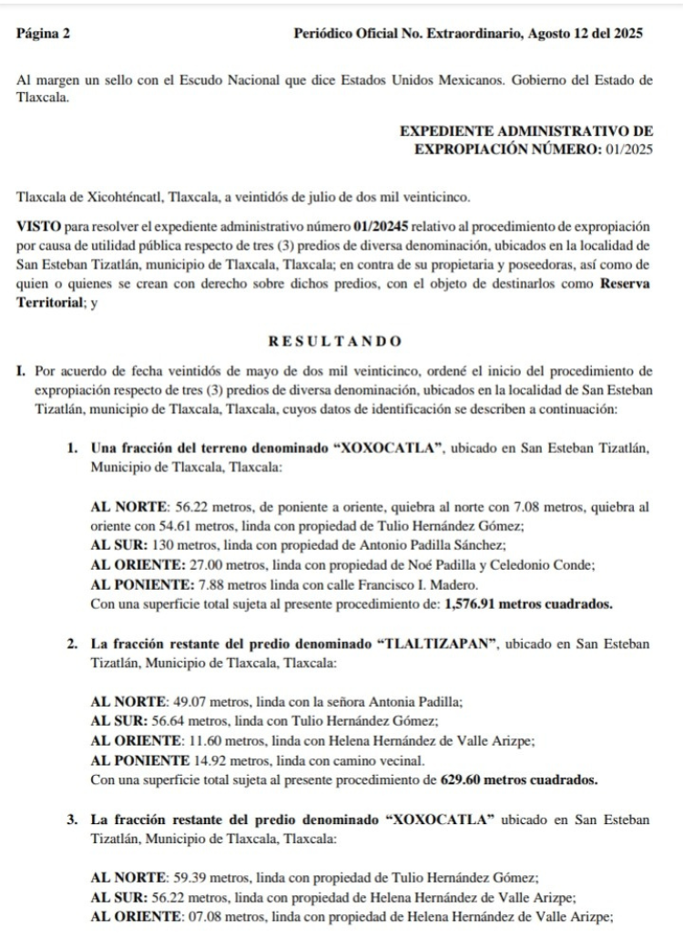 Por no hacer valer su derecho, Gobierno Local expropia tres predios en Tlaxcala