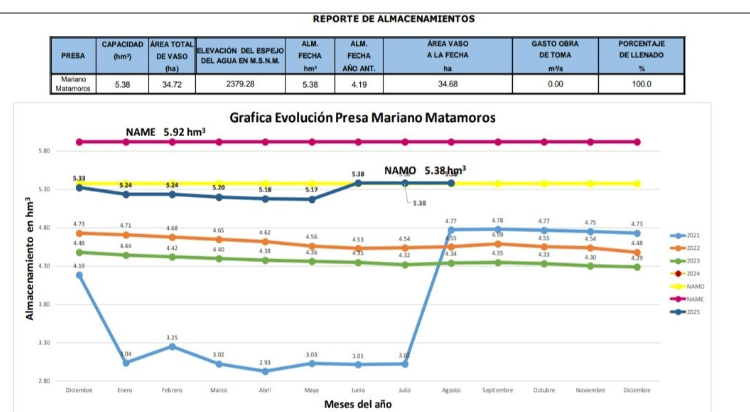 Presa Mariano Matamoros llega al 100% de su capacidad