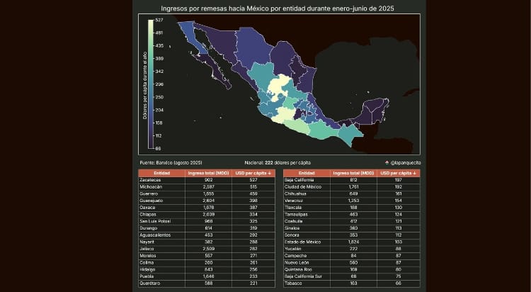 Tlaxcala, entre las entidades con menor captación de remesas en México