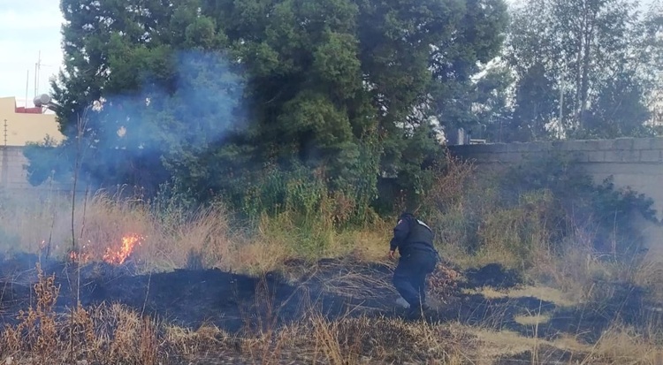 Policías municipales de Tlaxcala sofocan incendio cerca de una institución educativa