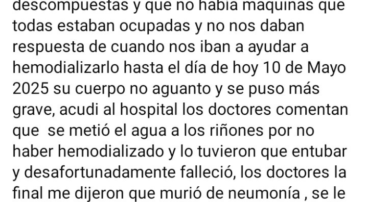 Fallece hombre por no recibir hemodiálisis en 15 días