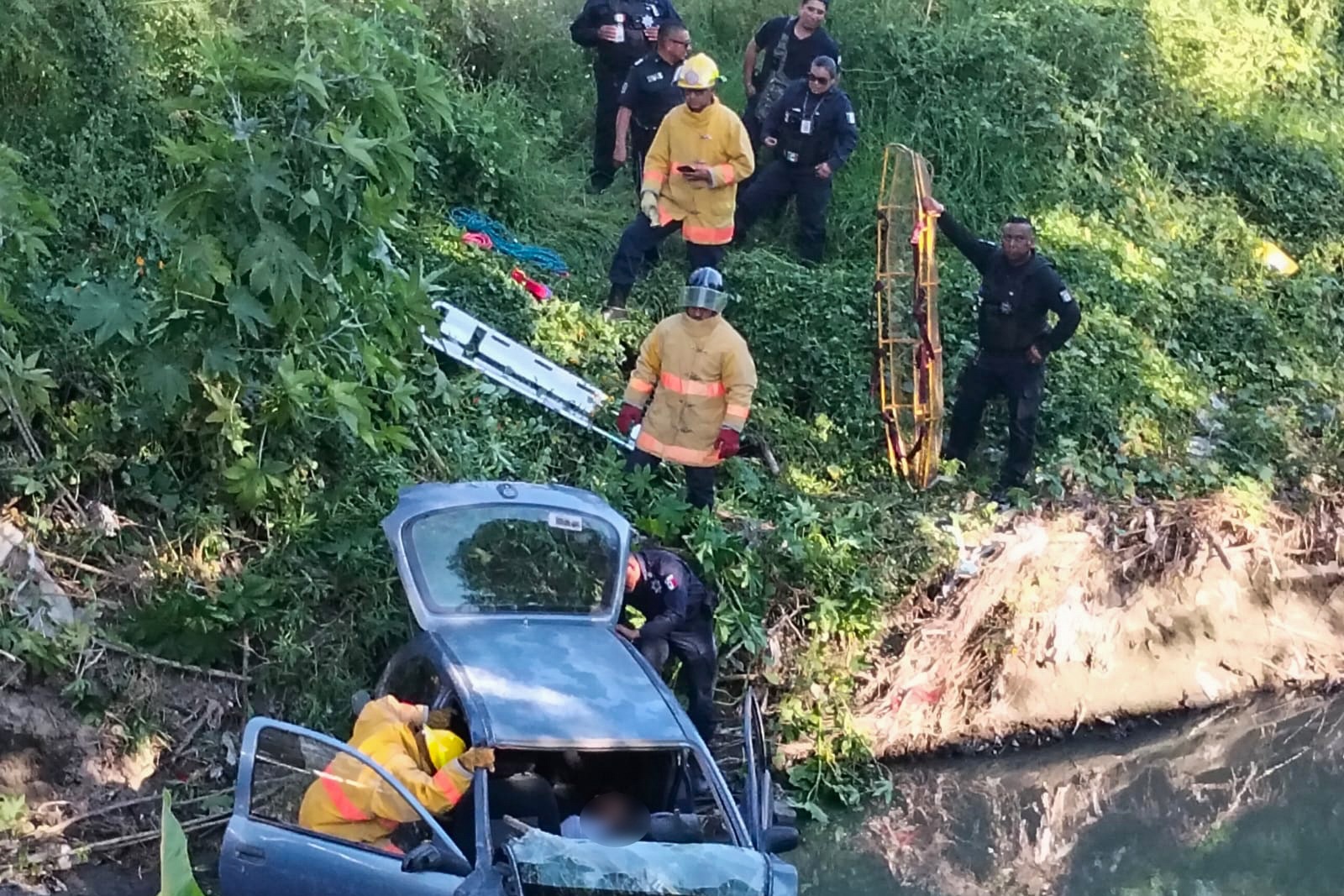 Rescatan a conductor que cayó del puente Briones, en bulevar Revolución