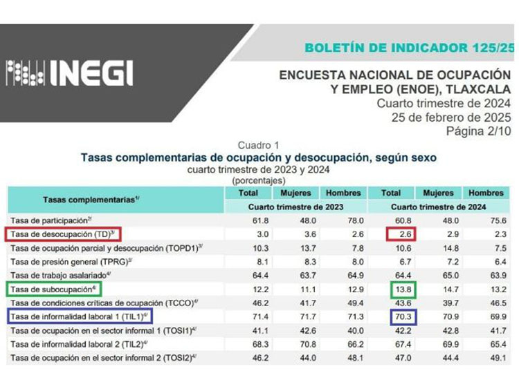 INEGI: 8 mil tlaxcaltecas se sumaron a la informalidad en el último trimestre de 2024