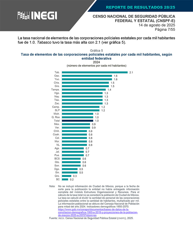 En Tlaxcala, sólo 2.2% de elementos de seguridad son reactivos: INEGI