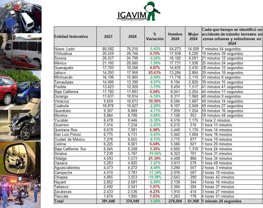En Tlaxcala un accidente cada 4 horas 51 minutos; en Nuevo León, cada 7 minutos