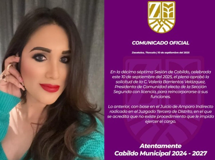 Consigue Valeria Lorety amparo que le permite regresar a sus funciones como presidenta de comunidad en Zacatelco