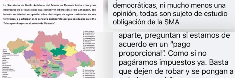 Ciudadanos de Tlaxcala critican consulta sobre el Río Zahuapan por preguntas sobre contaminación y ‘pago proporcional’