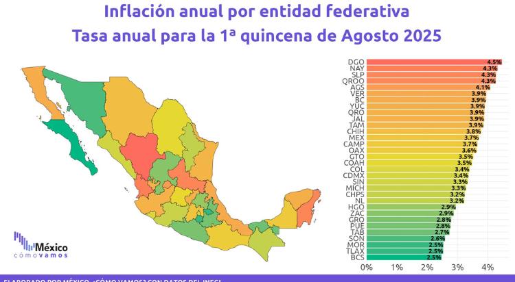 Tlaxcala reporta 2.5% de inflación en la primera quincena de agosto 2025