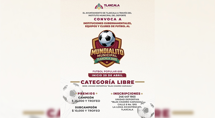 Ayuntamiento de Tlaxcala lanza doble convocatoria del “Mundialito municipal” para impulsar el deporte