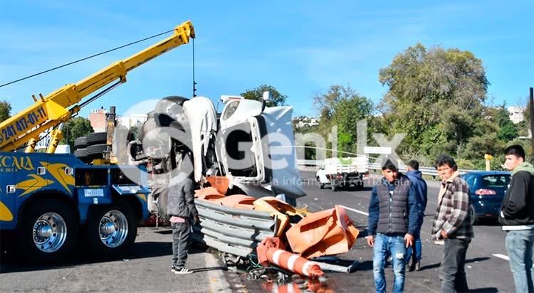 Vuelca tráiler cargado con cloro en la Vía Corta; conductor se quedó dormido