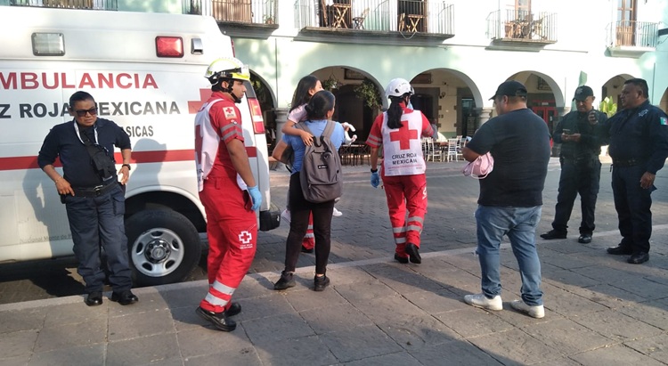Atiende paramédicos de Protección Civil Municipal a mujer lesionada en la Basílica de Ocotlán