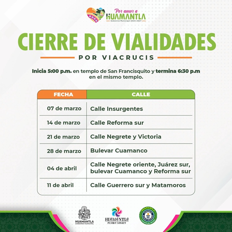 ¡Precaución! Cierre de vialidades por viacrucis en Huamantla