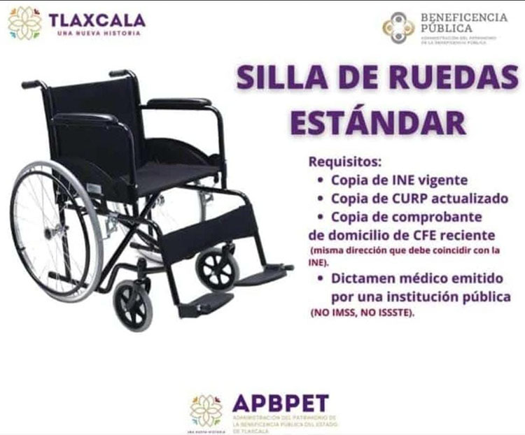 Ayuntamiento y SMDIF Chiautempan invitan a adquirir sillas de rueda estándar