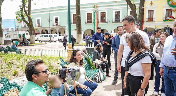 Alfonso Sánchez García recorre junto con la gobernadora la recién remodelada plaza de la constitución